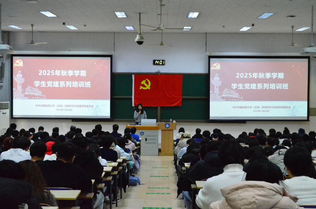 为深入学习贯彻习近平新时代中国特色社会主义思想,进一步加强学生党员和入党积极分子的思想政治教育,巩固学生党建系列培训成果,锻造政治坚定、本领过硬的红色接班人。12月28日,地学院举行2025年秋季学期学生党建系列培训班结业仪式。特别邀请2023年度全国三八红旗手、2023年度北京榜样、“门头沟榜样·抗洪先锋”先进个人、全国“最美公务员”、《感动中国》2023年度人物、大台街道落坡岭社区党支部书记孟二梅讲授培训班最后一节党课。学院党委书记承金、学院学工组长李梦瑜、专职组织员张绪教、专职组织员刘剑平、专职组织员李杰、专职组织员周志广、学院学生党建工作负责人陈宇霄、学院专职辅导员王英九、2025 年第二期全体积极分子、2025 级全体新生党员、2025 年秋季新发展党员、博士生第十一岩矿党支部成员、党建助管参加。会议由学院学生党建工作负责人陈宇霄主持。